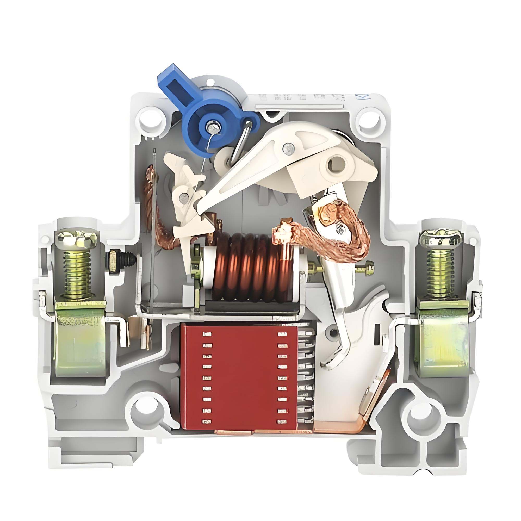 When a short circuit occurs (e.g., direct contact between the live and neutral wires, or insulation damage leading to overlapping conductors), a “short-circuit current” tens or even hundreds of times the rated current is instantly generated. At this point, the circuit breaker’s internal electromagnetic release comes into play: the short-circuit current flowing through the coil generates a strong magnetic field, attracting the armature to rapidly strike the trip mechanism, causing the contacts to open within 0.01-0.02 seconds. This minimizes the impact of the short-circuit current on conductors and equipment, while also preventing safety hazards caused by arcing.