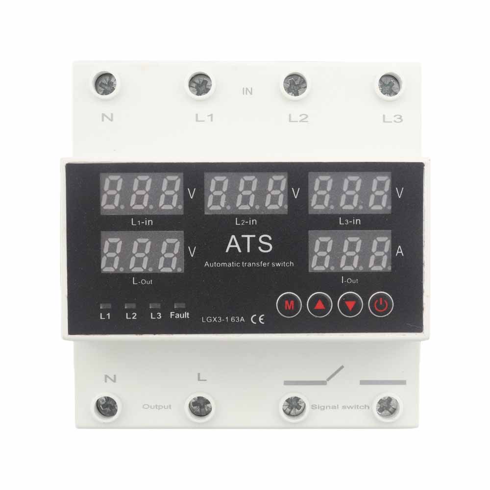 Multiple power management: This three-way automatic transfer switch has 3 power input interfaces, including mains (main power), generator and inverter. When the main power supply fails, the voltage is unstable, or other problems occur, the switch can automatically detect and switch to the next available power supply to ensure uninterrupted power supply. Output voltage: 220V, output current: 63A