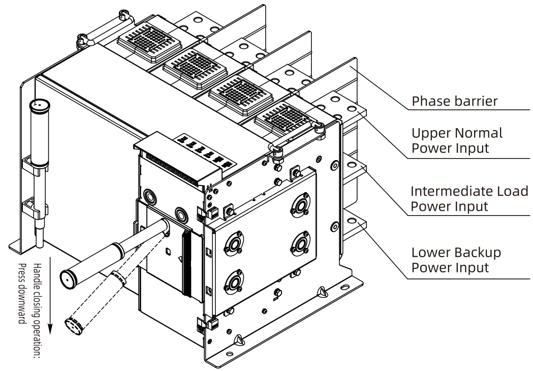 Dedicated three-position automatic transfer switch. Upon receiving a transfer signal, it can immediately (or after a preset delay) switch from one power supply to another, or to a neutral disconnected position not connected to any power supply.