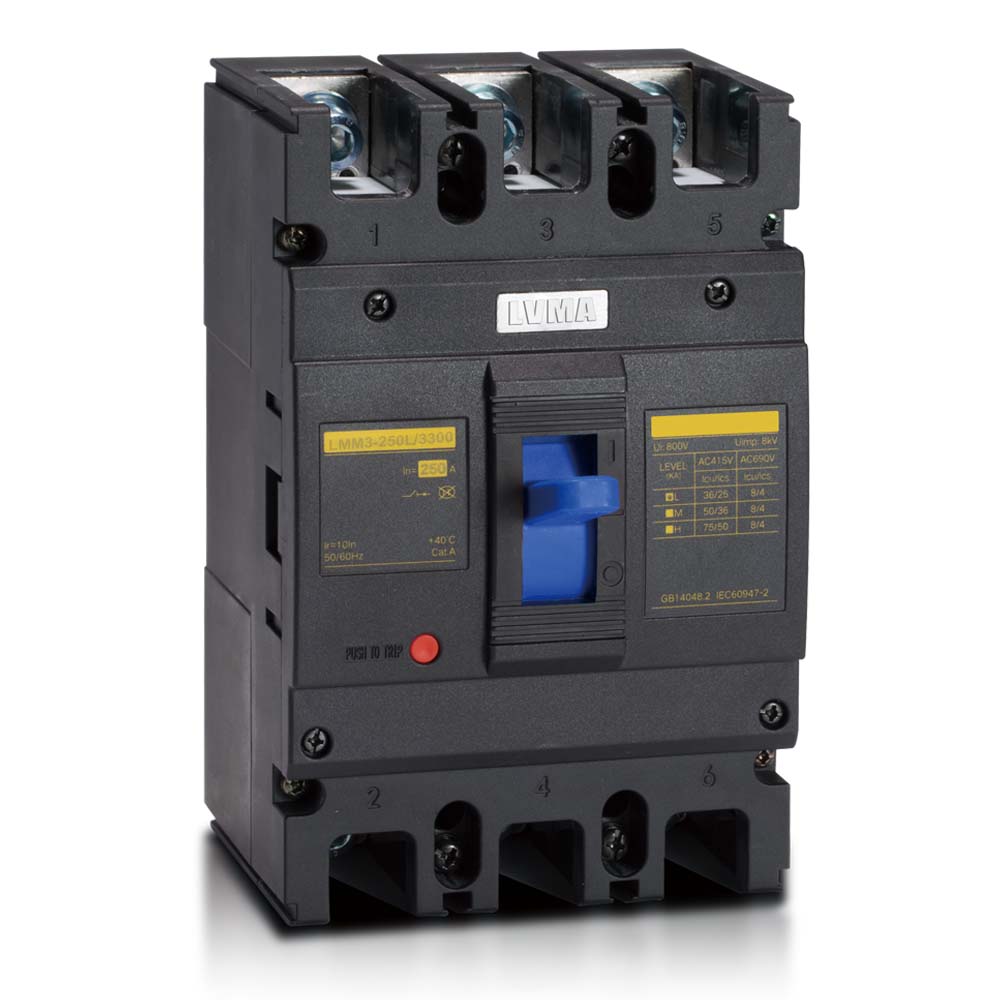 LMM3 MCCB has a rated insulation voltage of 800V and is suitable for circuits with AC 50Hz/60Hz, rated operating voltage 690V and below, and rated current up to 800A. It has overload, short circuit and undervoltage protection functions. It is divided into four categories: C type, L type, M type and H type according to the rated limit short circuit breaking capacity.