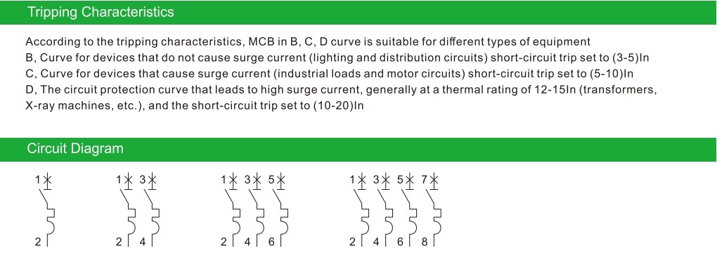 Magnetic release characteristic B:(3-5)xIn,C:(5-10)xIn,D:(10-20)xIn