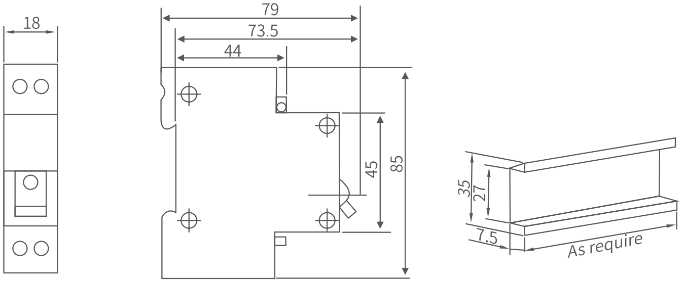 | 230(220) | 1P+N | 40 | 6,10,16,20,25,32,40 | 10、30、100 | 0.5I△n | ≤0.1 | 6000 |