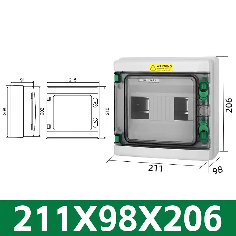 The HA Outdoor Waterproof Distribution Box is a modular electrical protection solution designed for both indoor and outdoor use. Constructed from high-strength engineering plastic with a transparent viewing window and an IP66 high protection rating, this box safely accommodates air switches, circuit breakers, and other electrical components.