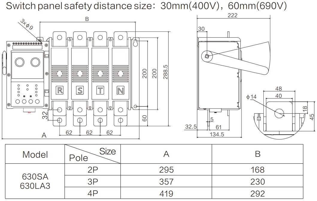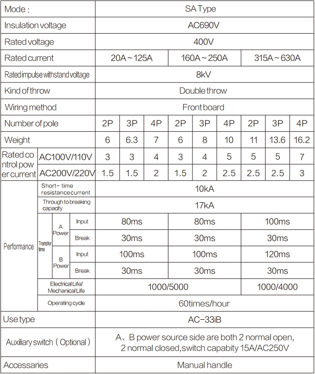 SA Type Automatic Transfer Switch Solenoid-type ATS 630A