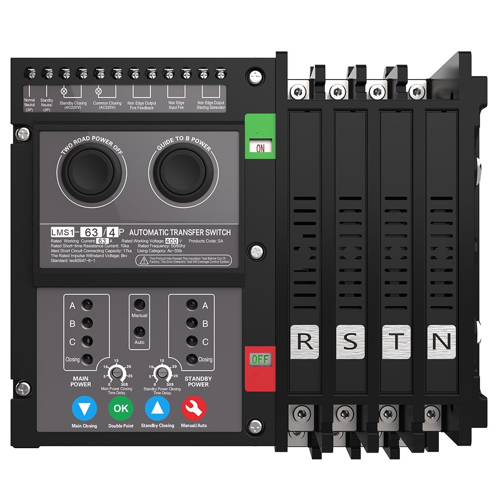 Suitable for AC 400V and below, rated frequency 50Hz. In case of power supply failures such as phase loss, overvoltage, or undervoltage, the transfer switch under the control of the controller can quickly switch the load from the main power supply to the backup power supply (the backup power supply must be normal at this time). Users can also place the load in an intermediate position when needed, so that the load is neither connected to the main power supply nor the backup power supply.