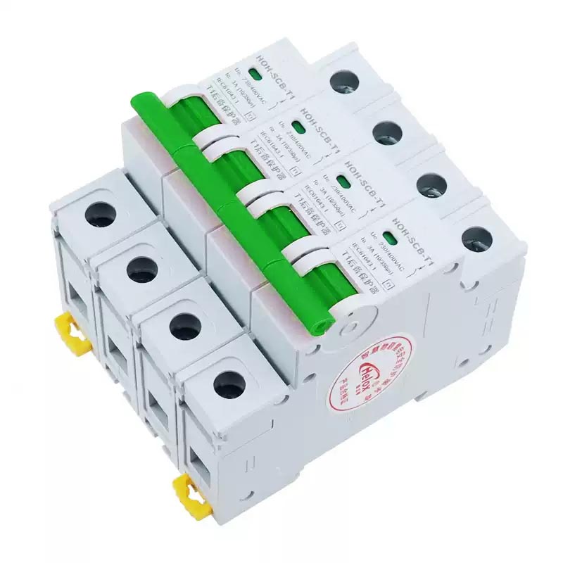 When the SPD has abnormal power frequency current due to lightning strike, aging or internal short circuit (usually above 3A), the backup protector cuts off the circuit within 0.1 seconds through a high-speed electromagnetic tripping mechanism or electronic control module. It can withstand large lightning strikes and does not break under lightning transient currents, ensuring that the SPD continues to protect against lightning and has the ability to quickly break low power frequency currents.
